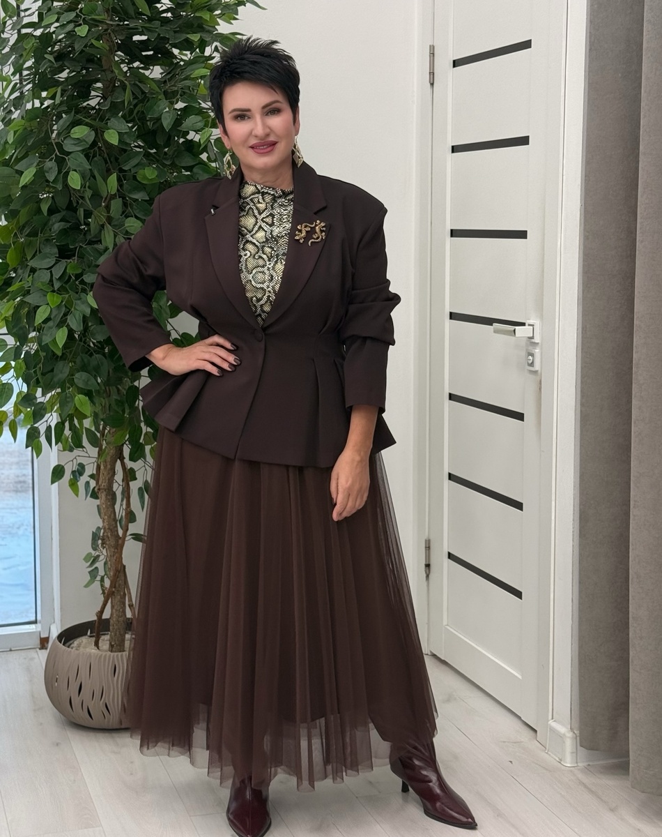 Женщины элегантного возраста 50+ обладают особой мудростью и уверенностью. Эти качества великолепно подчеркиваются стильными и актуальными образами. В 2026 году модные тенденции предлагают нам смелые сочетания, глубокие оттенки и интересные принты, с помощью которых можно раскрыть свою индивидуальность и почувствовать себя неотразимой. Давайте вдохновимся 10 образами, созданными с учетом последних тенденций. Если раньше чёрный считался универсальной базой, то сегодня эту роль уверенно забрали оттенки шоколада. Эта палитра выглядит дороже, глубже и современнее, чем привычный чёрный total look. Шоколадный монохром можно разбавить змеиным принтом, добавив текстуры и визуального интереса, не перегружая образ. Платье цвета мха придает образу спокойствия и глубину. Контрастный пояс подчеркивает талию, создавая более четкий силуэт. А акцентный пиджак в леопардовый принт делает образ более динамичным и модным. Важно, чтобы принт был не слишком кричащим, а скорее стилизованным. Посмотрите, к
