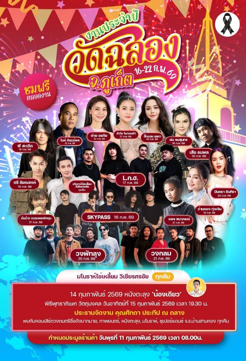 Муниципалитет Чалонга завершает приготовления к 118-й по счету ежегодной ярмарке у храма 📍Wat Chalong (Wat Chaiyathararam), традиционно проходящей в районе Нового года по китайскому лунному календарю. Формально событие продолжается неделю, но на деле – порядка 10 дней. И в этом году ярмарочные ряды тоже откроются заранее. Ярмарка у храма в Чалонге – Ngan Wat Chalong или Wat Chalong Fair – крупнейшее и старейшее из подобных мероприятий на Пхукете. Официальные даты мероприятия – с 16 по 22 февраля, но первые ивенты на храмовой территории запланированы на 14 число (хотя к Дню всех влюбленных они не будут иметь отношения). 🗓 В субботу, 14 февраля, жителей и гостей Пхукета ждет выступление традиционного театра марионеток «Нонг Диеу». 🗓 На воскресенье, 15 февраля, запланирована большая религиозная церемония со значимыми буддистскими реликвиями. 🗓 Понедельник, 16 февраля, будет первым официальным днем работы Wat Chalong Fair '69. В качестве главного события запланирован концерт групп