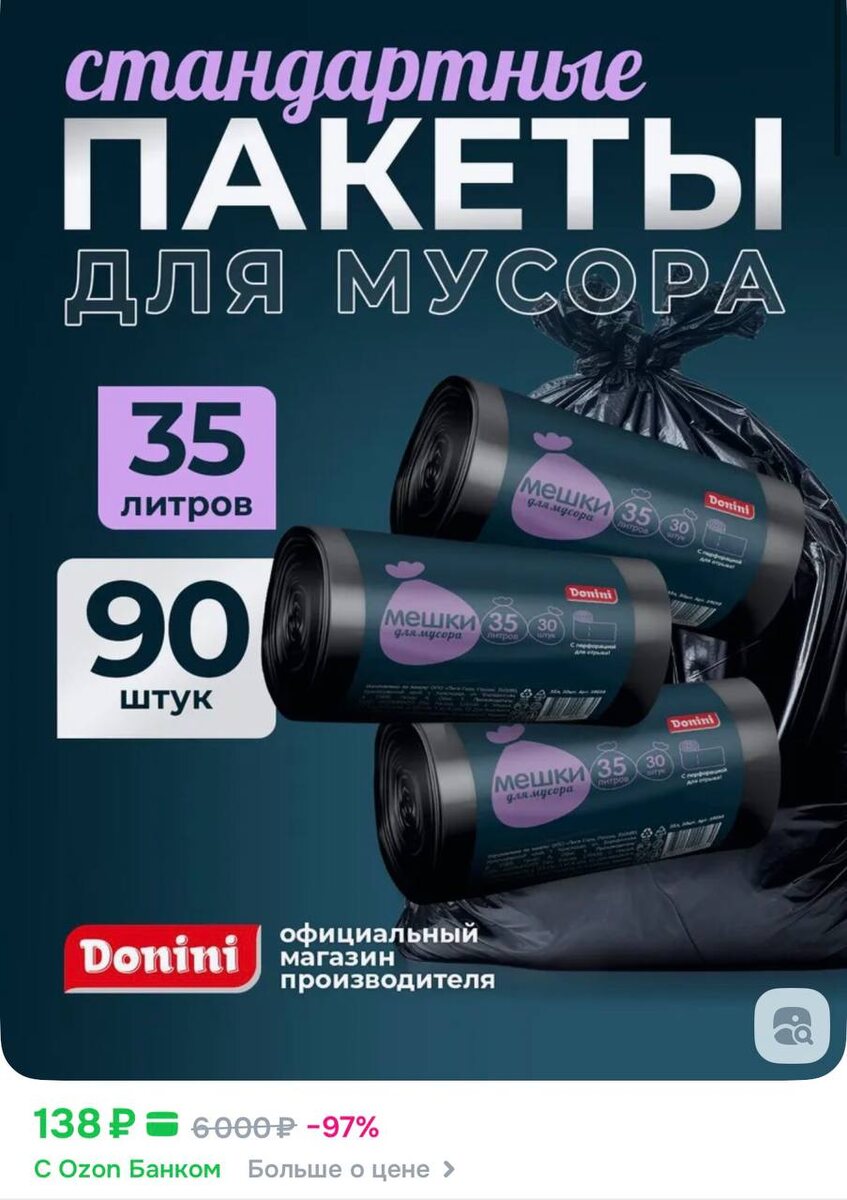 😀😀😀Пакеты для мусора 35л 90 штук черные (мусорные мешки 35 литров)