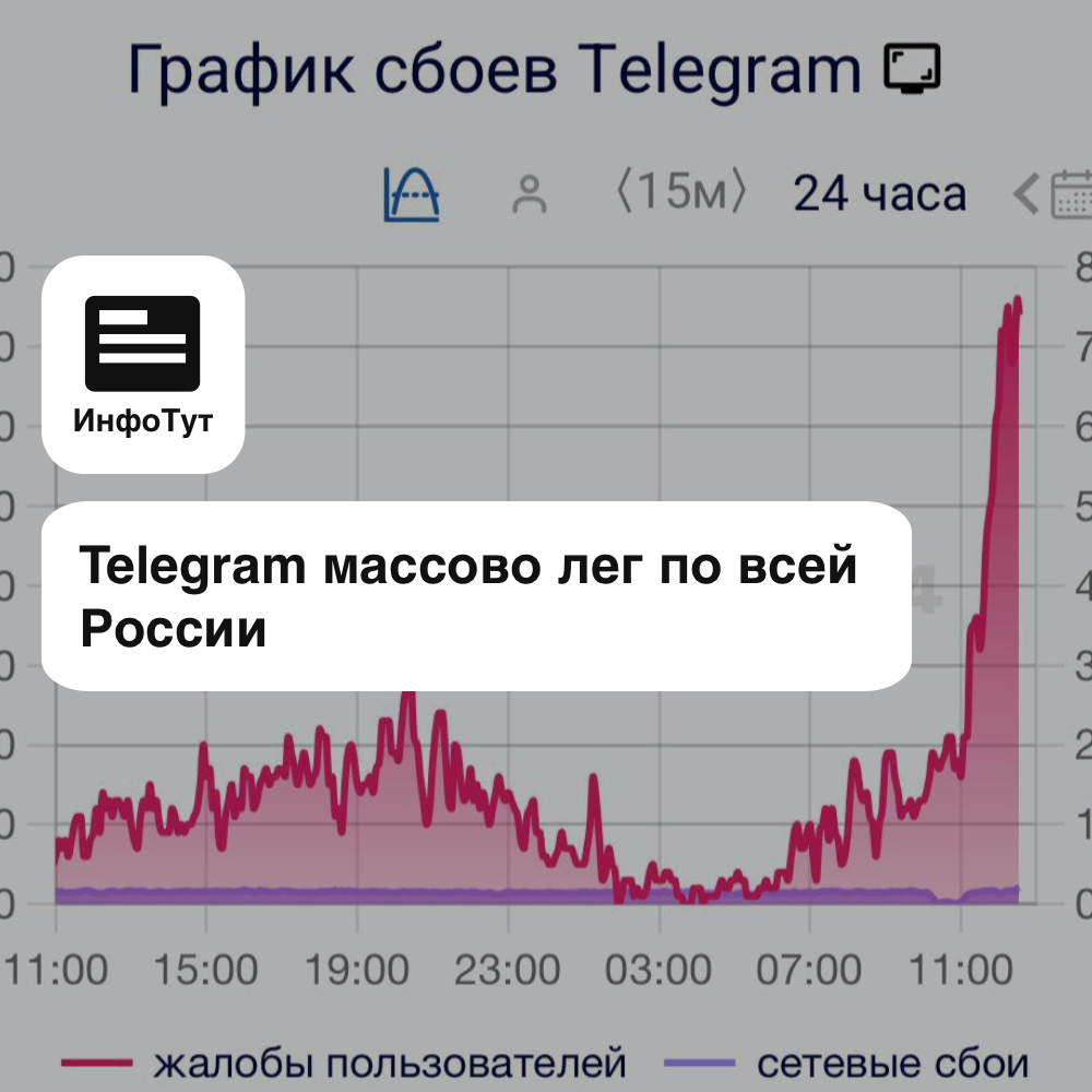 Пользователи из разных регионов страны сообщают о масштабном сбое в работе Telegram. По жалобам, не загружаются фото и видео, сообщения отправляются с задержкой или не уходят вовсе. Проблемы фиксируются одновременно в нескольких субъектах РФ, что указывает на общероссийский характер сбоя. Официальных комментариев от команды мессенджера на данный момент не поступало. Источник: Infotut.ru