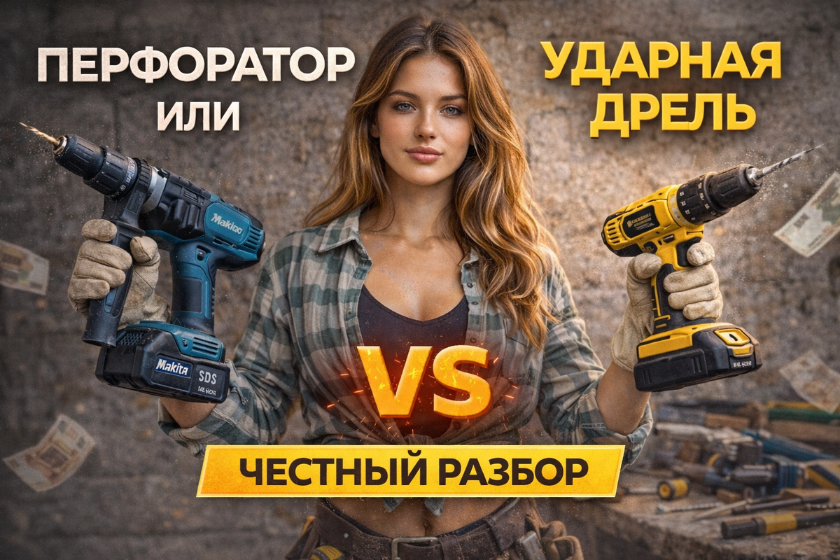 👉 перфоратор долбит. Это инструмент для квартиры и мелкого ремонта. Это уже инструмент для заработка или серьёзного ремонта. Здесь многие удивляются. Удар в дрели: Удар в перфораторе: Поэтому: Честно: нет. Да, можно: Но экономия сомнительная. Если бетон — перфоратор обязателен. СценарийЧто братьПовесить полку раз в годУдарная дрельРемонт в квартиреПерфораторПодработки, шабашкиПерфораторДом, дача, хозблокПерфораторТолько дерево и металлДрель Важно: дешёвый перфоратор полезнее дорогой ударной дрели, если работаешь с бетоном. Миф 1: Ударная дрель = перфоратор