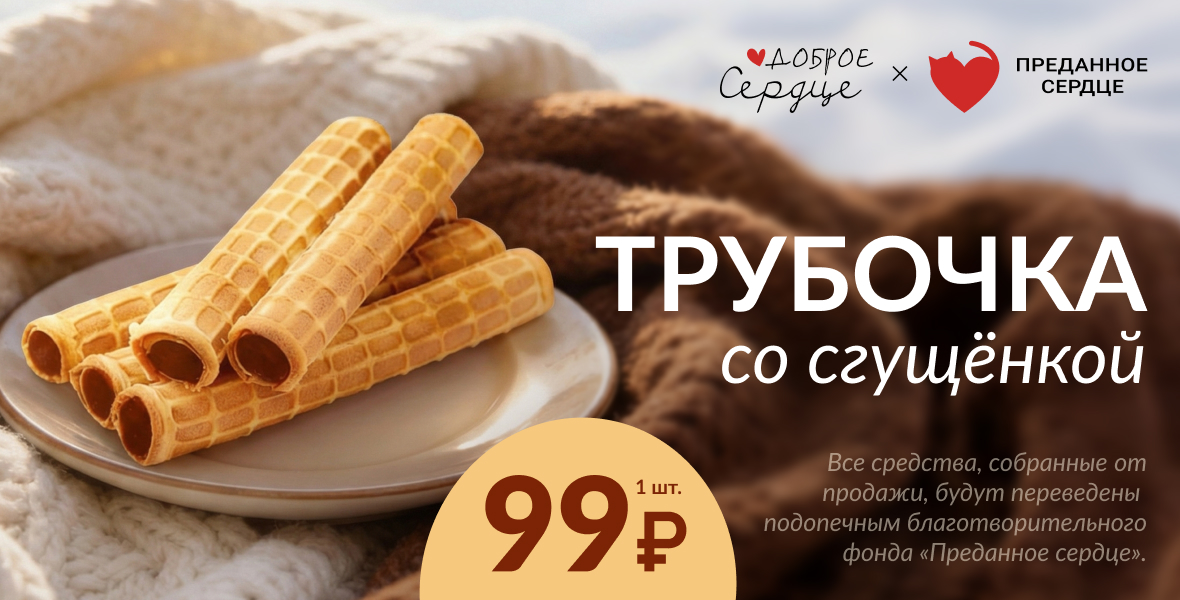 Вкусную акцию в поддержку бездомных животных запустил приют для кошек «Преданное сердце» в Санкт-Петербурге. Гости сети ресторанов могут помочь питомцам, просто выбрав любимый десерт - трубочку со сгущёнкой. Акция действует до 28 февраля. Напомним, приют «Преданное сердце» с 2016 года занимается спасением, лечением, содержанием и поиском новых семей для бездомных кошек. - Вырученные средства от продажи десерта по специальной цене 99 рублей будут перечислены на поддержку приюта. Каждая проданная трубочка — это не просто десерт, а реальный вклад в заботу о тех, кто в ней особенно нуждается. Мы рады поддержать «Преданное сердце» и дать нашим гостям возможность легко присоединиться к важному делу, - говорит Вилкова Ирина, управляющая ресторанами BAHROMA. Средства, собранные в рамках акции, помогут обеспечить подопечных приюта качественным кормом, медикаментами и всем необходимым для комфортной жизни. - Мы верим, что даже небольшое, но искреннее участие может изменить мир к лучшему, — добав