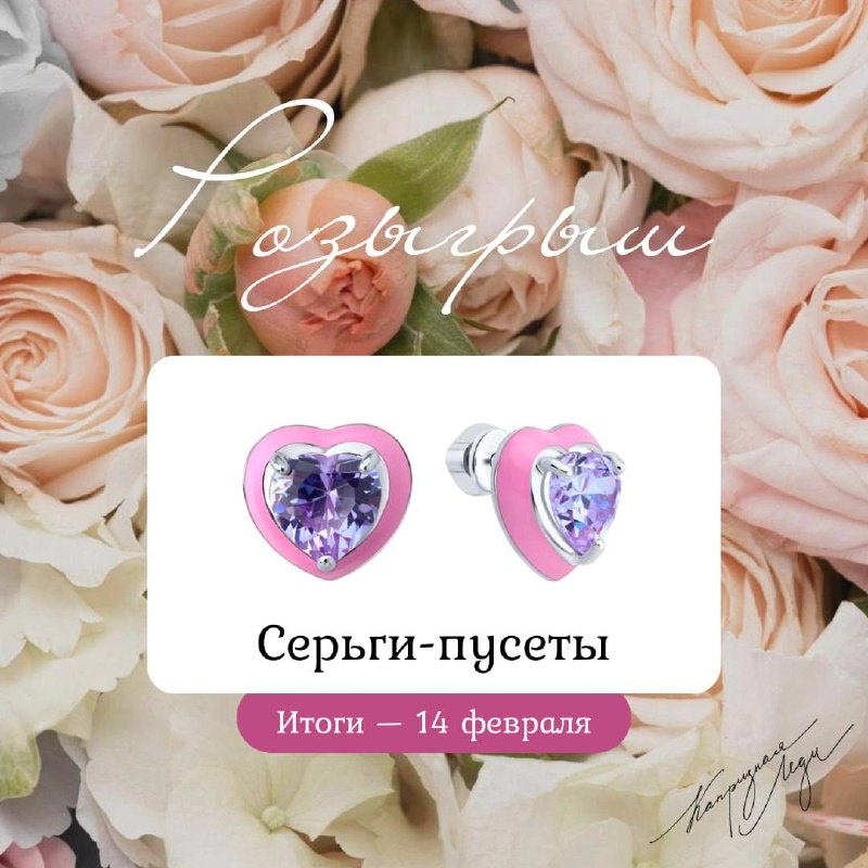 ! 💝 Как принять участие? ✔️ Подписаться на наше сообщество Ювелирный магазин "Капризная Леди" ✔️ Поставить лайк посту в ВК ✔️ Сделать репост анонса на свою страницу в ВК *Отправление подарка — за наш счет. Если победитель уже выигрывал в этом месяце, проводится переизбрание. 🎁 Победитель будет выбран с помощью приложения-рандомайзера Konkurs VK. Важно: — Ваша страница должна быть открытой на момент подведения итогов. — Не удаляйте репост записи как минимум в течение 24 часов с момента объявления результатов. — На вашей стене должно быть не более 10% конкурсов и розыгрышей из последних 50 записей. Массовые конкурсные страницы будут исключены. Итоги подведём 14 февраля и объявим победителя в отдельном посте! Желаем всем удачи! 🎉