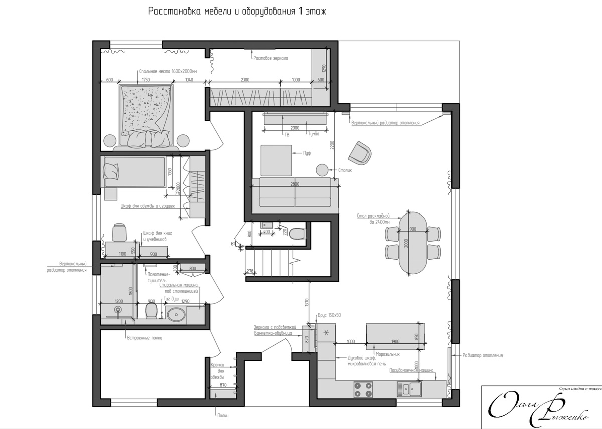 Диваны, кровати, шкафы: Показываются упрощенно. Обратите внимание на габариты масштаб соблюден, это помогает оценить, не будет ли тесно.