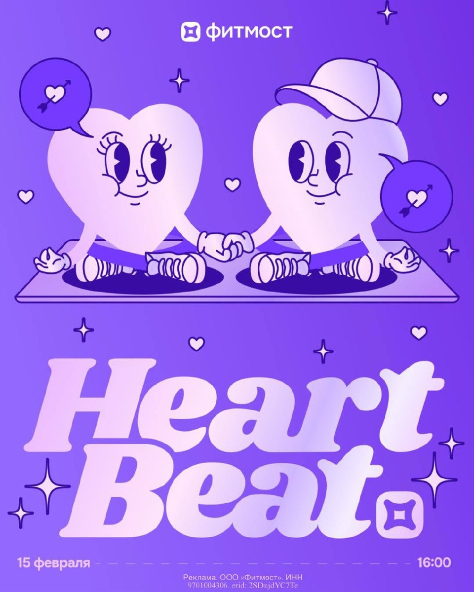 🤍 Фитмост отмечает день всех влюблённых активно и устраивает ивент Heart Beat. Ведь настоящие сердца должны биться чаще! Заряжаемся адреналином на парном боксе под диджей-сет, ловим релакс на арома-йоге, болтаем на speed dating совместно с Pur Pur, зажигаем на парных танцах и пробуем себя на мастер-классах. Что ещё будет? Сладкий шоколадный фонтан с фруктами, фотобудка, освежающая вода и б/а пиво от Zero Point, исследовательская точка от Litte Life Lab, ну и вишенка на торте — турнир по настольному теннису с подарками! 📆 15 февраля, 16:00-21:00 📌 Пространство Bounce, 3-я ул. Ямского Поля, 2, корп. 6 💰 Активность 500₽, регистрация по ссылке или в приложении Фитмост — ивент "Heart Beat" (запись нужна каждому, включая вашу вторую половинку) ▶️ Если пары нет — её найдут вам прямо на месте!