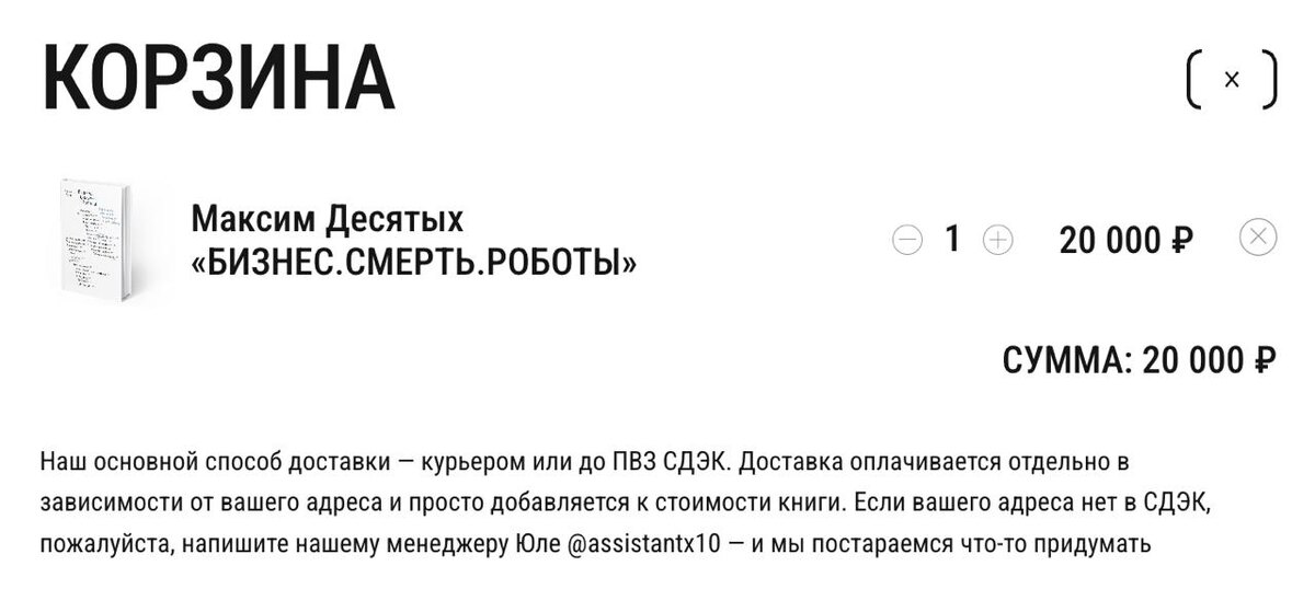 ? Есть вещи, стоимость которых совершенно алогична. Например, книга за 20.000 рублей. “Кто её купит?” - скажет обыватель. А никто и не купит. Тем более обыватель. Она ему просто-напросто не нужна. Вот книга Максима Десятых “Бизнес.Смерть.Роботы” - от основателя компании с оборотом 3 млрд. рублей для владельцев компаний по типу его (разработка софта, сайтов и вот этого всего). То есть как бы для меня очень целевая. Много ли это 20.000 рублей для книги? Для книги, скорее всего да. Я рассуждаю по-другому - если хоть одна идея из этой книги позволит мне заработать больше 20.000 рублей - то она себя окупит. А поскольку большинство вещей, которые ты применяешь ты сможешь использовать и далее - то, скорее всего она окупит себя в несколько раз. Прочитаю, потом расскажу что в итоге. Я никогда так дорого книги не покупал ещё. Кстати, подобная история и с тренингами, коучингом, всякими экспертными консультациями. Бывает так, что одна-две консультации помогают сразу по-другому посмотреть на вс