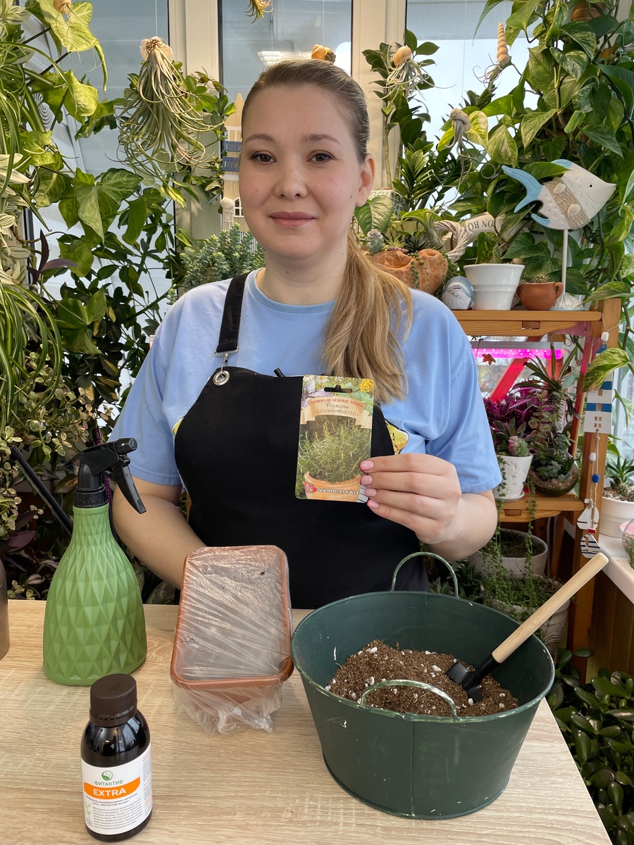 при приготовлении мяса, рыбы, овощных рагу, запеканок, а также розмаринового уксуса, масла, соли. А я еще делаю пряные венки с розмарином. КАК ПОСЕЯТЬ СЕМЕНА РОЗМАРИНА НА РАССАДУ Для посева беру емкость (по высоте 5–7 см, так как корневая система у розмарина - стержневая) с дренажными отверстиями. Почва. В естественных условиях розмарин растет на песчаных и каменистых грунтах, поэтому семена лучше взойдут в неплотном и легком грунте. Беру торф+песок+перлит+вермикулит. Вообще семена розмарина требуют стратификации (обработка холодом и влагой). Честно, я не люблю все такие процедуры. Я делаю все проще и быстрее. Семена я предварительно замачиваю в стимуляторе. В одном литре воды развожу 1 мл «Фитактив Extra» и оставляю на 1 час в растворе. «Фитактив Extra» является стимулятором роста, а также увеличивает уст