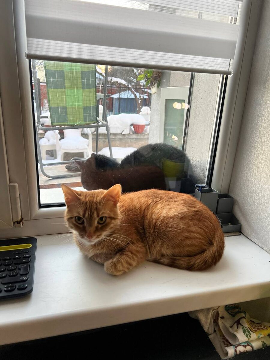 Гретта очень странно отражается в окне. Или это самая прокачанная психологически кошка, которая не прячет свои Тени😃