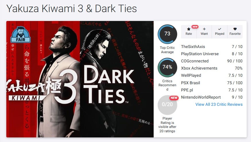 Приятное времяпрепровождение для фанатов, но проблемное для новичков серии: первые оценки Yakuza Kiwami 3 & Dark Ties — 73 балла из 100 на