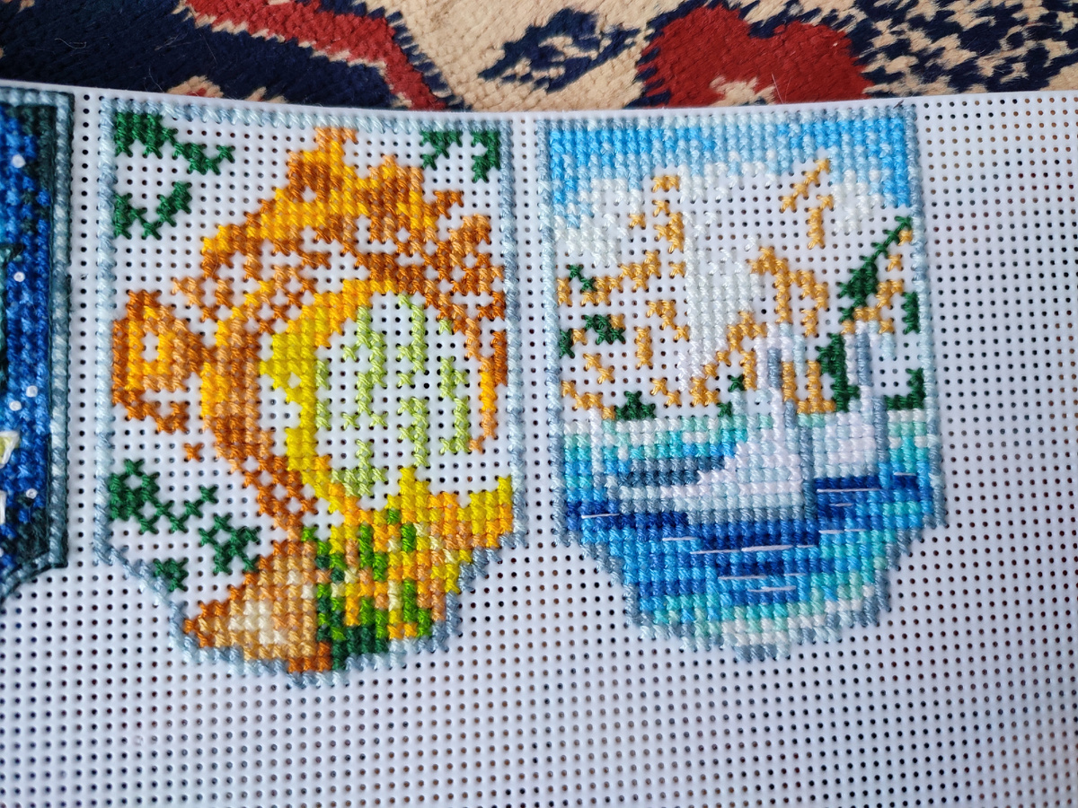 Ещё на урожайной серии я поняла, как удобно вышивать сразу два флажка одновременно. И вот, у меня