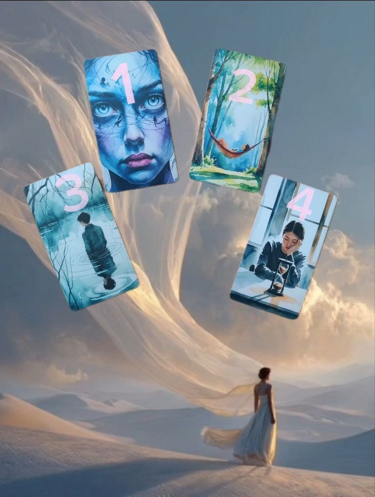 Ключевой фактор — это ваши личные ассоциации и эмоции, которые вызывает изображение. 🌟 КАРТА 1. Лицо крупным планом. Может указывать на внутренний конфликт, ощущение разбитости или уязвимости, влияние прошлого или окружающих людей на психику. Также может отражать процесс самопознания, когда человек «разглядывает» свои раны и пытается понять их происхождение. В контексте вопроса карта может сигнализировать о необходимости проработать травмы, пересмотреть отношение к себе или к окружающим, обратить внимание на эмоциональное состояние. 🌟 КАРТА 2. Человек, лежащий в гамаке. Карта может быть как символом покоя, восстановления и гармонии с собой и окружающим миром. Это образ баланса между активностью и отдыхом, намёк на необходимость «остановиться», чтобы набраться сил. Лес и гамак создают ощущение защищённости, а солнечный свет — надежду и перспективу. 🌟 КАРТА 3. Человек стоит в воде. Карта может символизировать о необходимости остановиться и прислушаться к себе. Возможно есть потреб