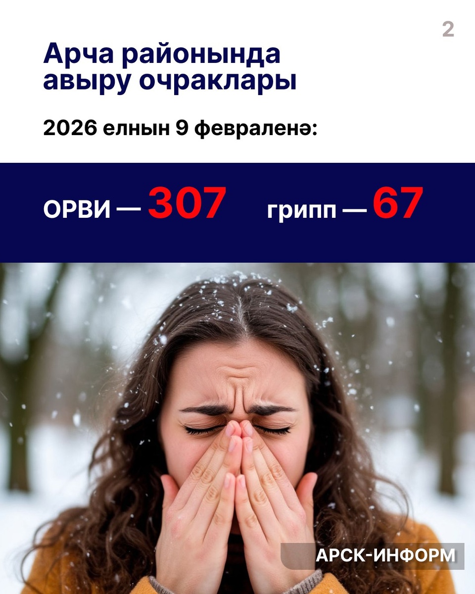 Арча районында ОРВИ һәм грипп белән авыручылар саны 2025 ел белән чагыштырганда кискен арткан😷 Иң күп очраклар мәктәпкәчә яшьтәге балалар