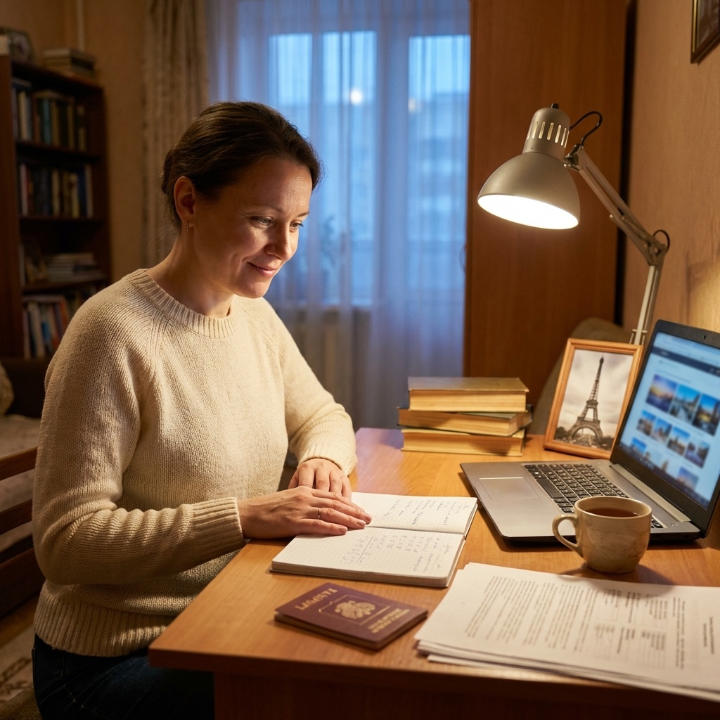 Марина Сергеевна открыла чистую тетрадь и написала на первой странице: «Париж. План захвата». Звучало амбициозно для человека, который никогда не выезжал дальше Сочи. Но именно так начинается любое самостоятельное путешествие — с чистого листа и готовности учиться.