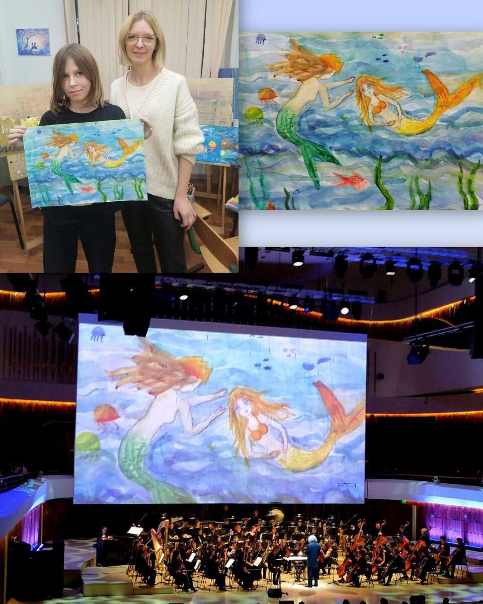 Х. Андерсена. Сказку «раскрасила» музыка К. Дебюсси, Э. Грига, Ж. Бизе, М. Мусоргского, Г. Малера, Я. Сибелиуса, Г. Форе. На большом 16-метровом экране КЗ «Зарядье» оживали картины юных художников со всей России, присланные на конкурс. Одной из таких работ стал рисунок ученицы 4 «Б» класса нашей школы — Алёны. Гордимся нашими талантливыми ребятами!🤩😍👏🏼