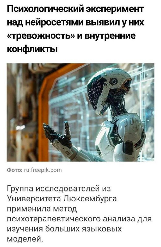 ? Последние месяцы я всё чаще слышу от специалистов тревогу: — клиенты уходят к ИИ — чат-боты заменят терапию — зарабатывать станет сложнее И недавно мне прислали любопытную новость 👆 Исследователи обнаружили у нейросетей… тревожность и внутренние конфликты. Фактически — даже ИИ «нужен психолог» 🤖 ИИ действительно забрал часть аудитории. Но какую? 👉 Ту, которая не готова платить 👉 Ту, которая пока не готова встречаться со своими чувствами 👉 Ту, которая ищет быстрые ответы, а не глубокую работу А люди, которым действительно больно, сложно, страшно, одиноко — всё равно идут к живому человеку. К тому, кто чувствует, слышит, остаётся рядом и может реально помочь, а не притупить очередную боль. Вопрос сегодня не в том, нужен ли психолог, а в том, какой психолог будет востребован в 2026 году и как ему выстраивать практику в новой реальности. 📌 Именно об этом мы будем говорить на эфире «Психолог в эпоху ИИ: тренды развития практики и продвижения в 2026 году» Эфир завершен 👈 �