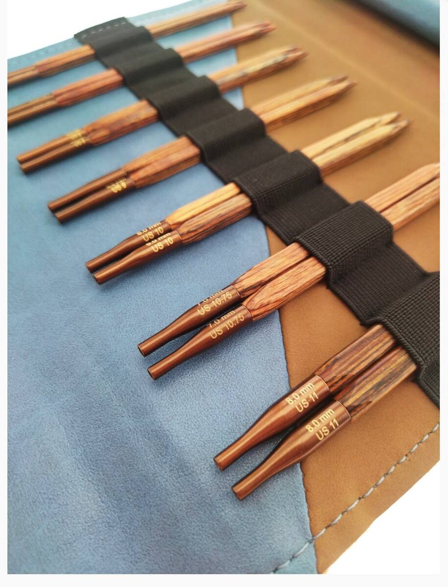 🥳 В стандартной длине 13 см, ходовые размеры 4мм, 4,5мм, 5мм, 5,5мм, 6мм, 7мм, 8мм и лески 60, 80, 100см. Гладкое покрытие спиц и приятные лески шоколадного цвета! Металлические плоские маркеры в наборе с чехлом из кожзама. Петли с кубической формой спиц будут плотнее, а значит аккуратнее🙌 Набор доступен в нашем интернет магазине по ссылке https://6wool.ru/catalog/instrumenty/nabor-semnykh-spits-ginger-cubics-13sm-knitpro/