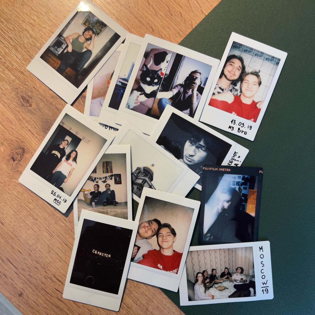 ? Привет! На связи Артём, я контент-менеджер и SMM-менеджер команды IMSO. Сегодня хочу рассказать вам о том, как я провел настоящее жестокое испытание для плёнки Instax. Есть распространенное мнение о том, что карточки Polaroid и Instax со временем выцветают на солнце. Но, судя по технологиям, которые применяются в составе плёнки, каждая фотокарточка имеет специальный химический состав и защитный слой, которые предотвращают воздействие солнечных лучей на уже проявленную фотографию. Это говорит о том, что с технологической точки зрения выцветание невозможно. Так получилось, что я невольно провел эксперимент для проверки этого утверждения. Фото, которые я прикрепил к этому посту, висели от 2 до 8 лет на стене в моей комнате, каждый вечер на закате солнце светило прямо на них, и с ними абсолютно ничего не произошло! • Кадры формата мини были сделаны на Instax mini 9 и висели на стене с 2018-19; • Квадратные фото были сделаны на цифровой Instax SQ20 в 2019; • Фото с черной рамкой было