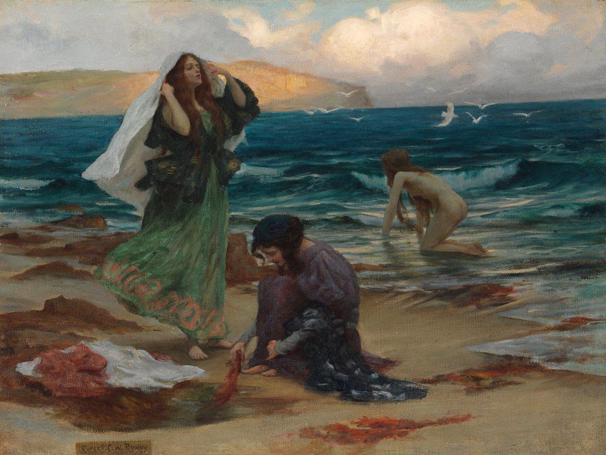 Проведя полтора года в Лондоне, австралийский художник Руперт Чарльз Вульстен Банни (1864–1947) переехал в Париж в 1885 году. Первыми работами, представленными им в Салоне, были масштабные мифологические и библейские композиции. Его картины отличались тщательной проработкой деталей, которую художник перенял у своего учителя Жан-Поля Лоранса (1838–1921), хотя на них видно и яркое впечатление, которое на него произвели французские символисты. Банни быстро стал одним из самых известных иностранных художников в космополитическом парижском обществе, как среди зрителей, так и среди критиков. Он часто бывал в Этапле в Нормандии, где располагалась значительная англоязычная художественная публика. Прибрежные пейзажи, написанные там на рубеже веков, сочетают в себе реальное и воображаемое, а в его фигурах на первый план выходит прерафаэлитский идеал женственности. В 1888 году он познакомился с венгерским писателем Жигмондом Юстом, и они стали близкими друзьями. Банни несколько раз посещал