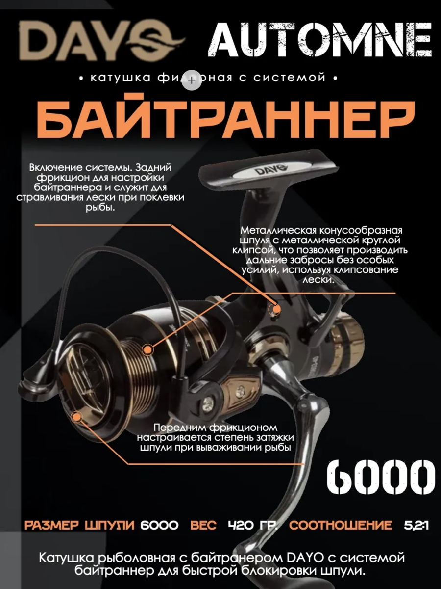 Обзор катушки с системой байтраннер DAYO AUTOMNE 6000 для фидера