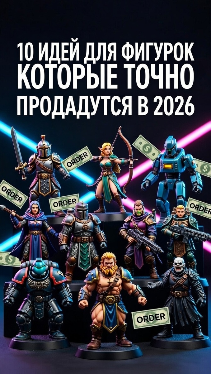 Привет! Это команда SmolArt. В 2026 году рынок кастомных фигурок и миниатюр растёт как на дрожжах. Люди готовы платить 3000–15 000 руб. за уникальную модель. Вот 10 идей, которые сейчас улетают в заказах и на STL-продажах — и как за 1 вечер подготовить их к печати/продаже. 1. Кастомный герой по фото в стиле Dark Souls