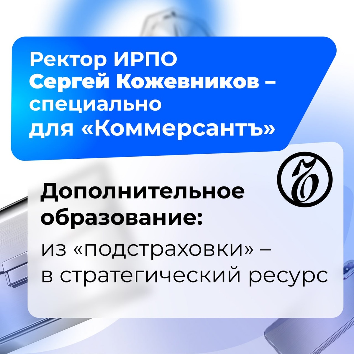 ▪️ О тренде рассказал ректор ИРПО Сергей Кожевников в экспертной колонке для издания «Коммерсантъ». «Мы живем в мире, где технологии и запросы работодателей меняются быстрее, чем успевают выходить новые учебники. Форматы занятости множатся, отрасли перестраиваются буквально на глазах. В этой реальности дополнительное профессиональное образование уже не «надстройка» к диплому, а нормальный способ жить в профессии долго и уверенно», – подчеркивает ректор нашего Института. 💡 Какие образовательные программы сегодня особенно востребованы по всему миру? 💡 Что стало главным критерием качества программ дополнительного профессионального образования? 💡 Как устроена система программ дополнительного образования для педагогов и управленцев в ИРПО? ▪️ Все ответы — в материале. Читайте его по ссылке. ИРПО реализует ключевые проекты в сфере СПО по поручению Минпросвещения России. Главные новости СПО — в Telegram / в MAX #ЭкспертИРПО #ДПО