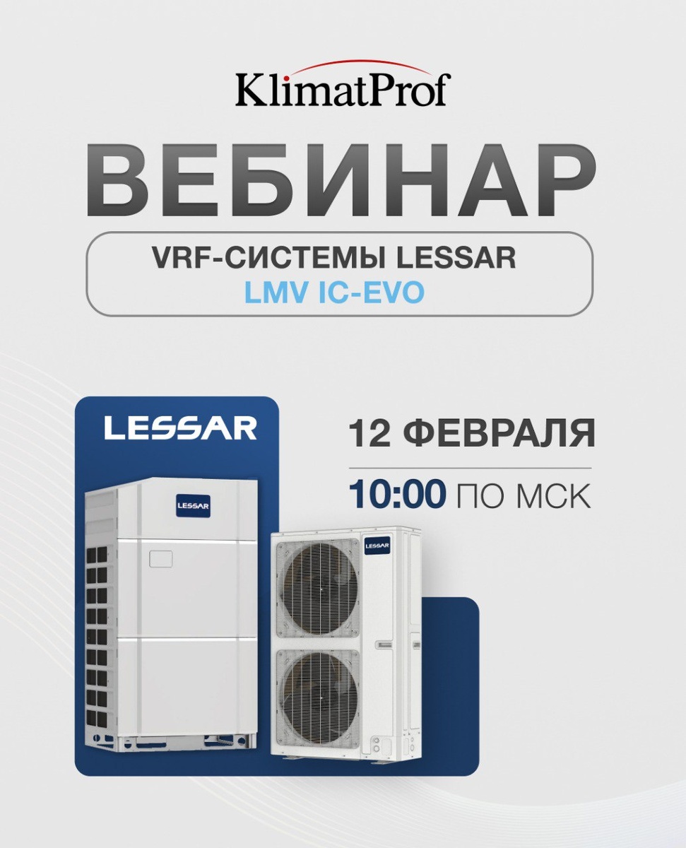 ? Время узнавать больше о главном продукте сезона — VRF-системах! Мы приглашаем вас на вебинар, посвященный VRF-системам LESSAR LMV IC-EVO. 🗓 12 февраля в 10:00 по МСК. Технический вебинар будет состоять из 3 блоков: 1️⃣Обзор линейки LMV IC-EVO (вместе с новинками). 2️⃣Практический разбор основных этапов монтажа и пусконаладки серии Modular с рабочими лайфхаками! 3️⃣Возможность задать вопросы техническим экспертам. Если вы хотите быть на «ты» с профессиональной техникой, то этот эфир для вас. 🖥 Для подключения зарегистрируйтесь по ссылке: https://stream.kontur.ru/landings/fe73c994-9814-4ec5-8d0a-488f0bd3517e #вебинар