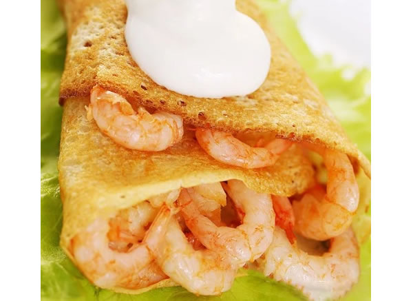 Блины с креветками, сыром и чесноком «Нежность»