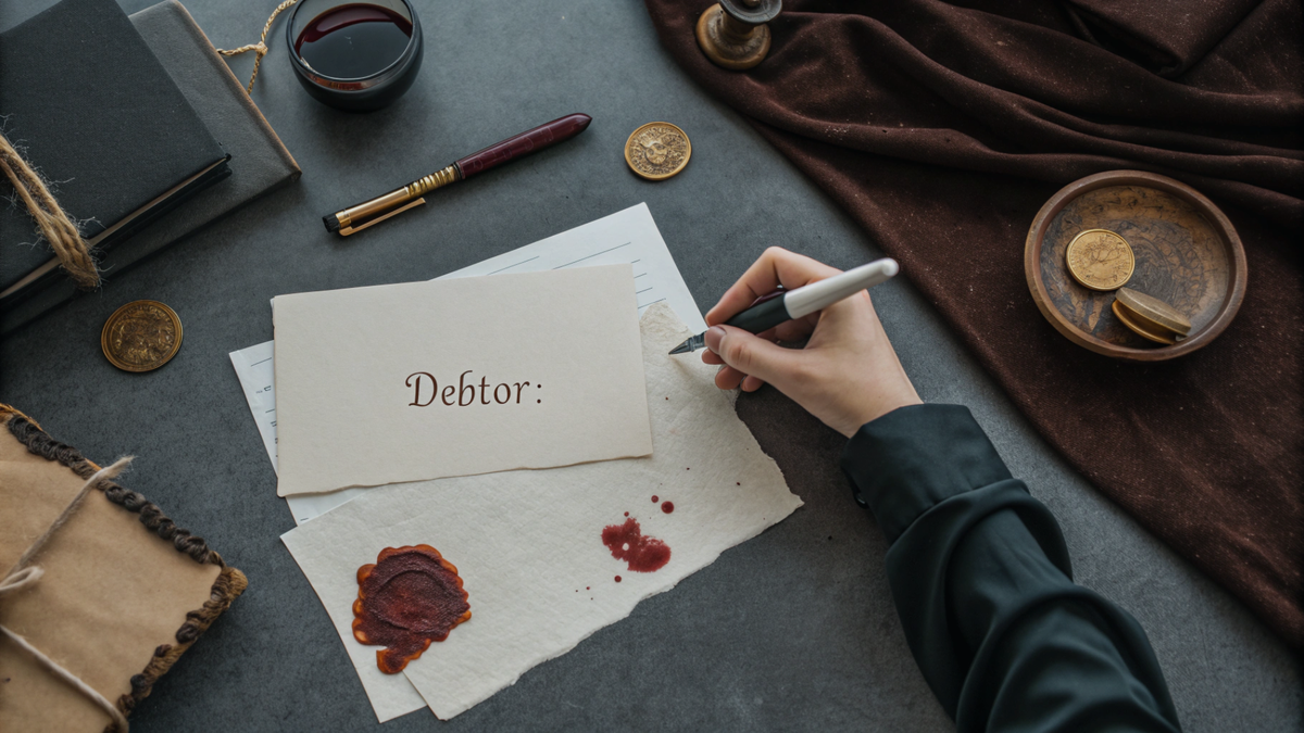 Возьмите лист бумаги. Заголовок: «Должник: [Имя/Название фирмы]».