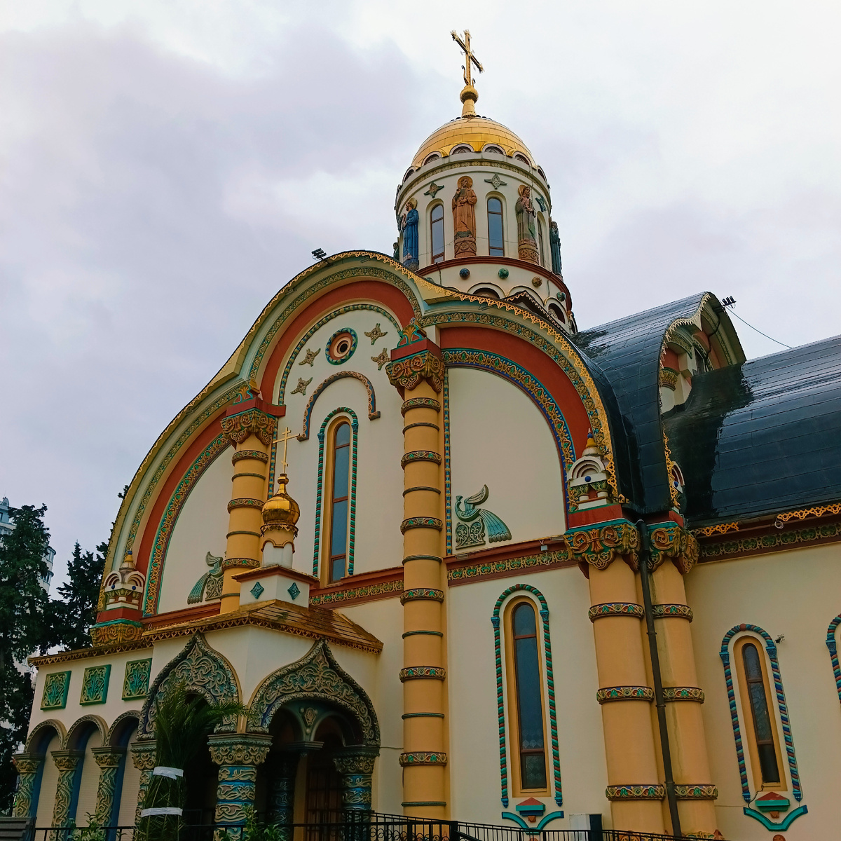 Тот случай когда можно полюбоваться храмом не только внутри,но и снаружи. Кафедральный собор равноапостольного Владимира в Сочи находится недалеко от парка Ривьера.
