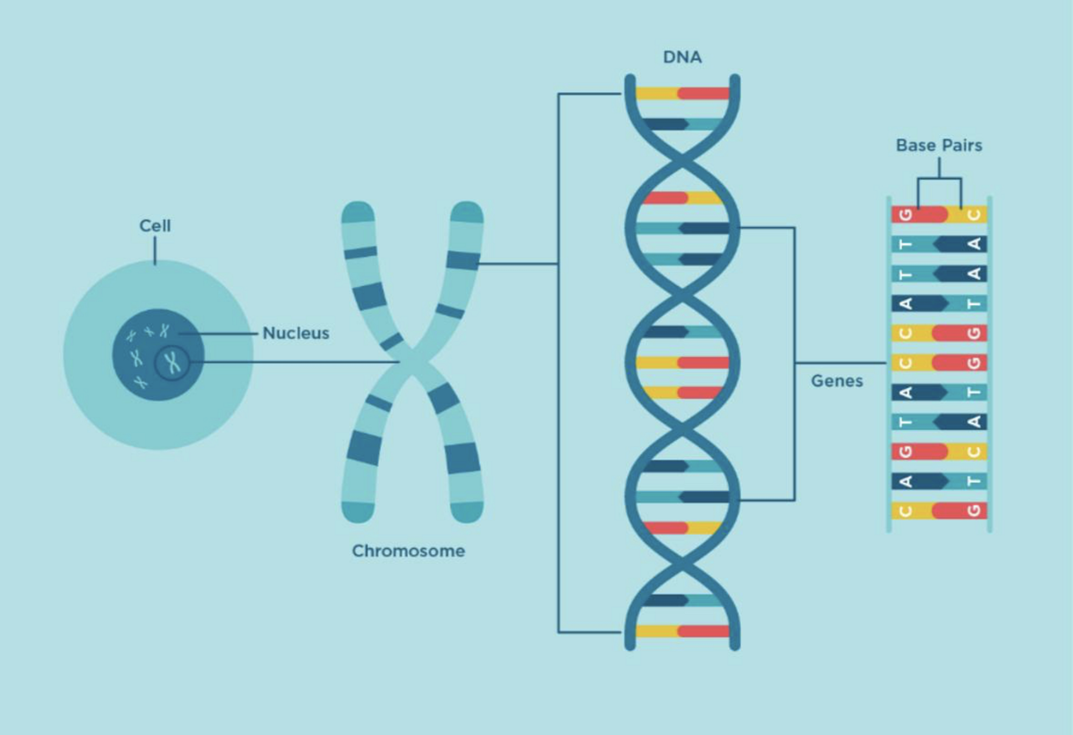 Геном – совокупность всей наследственной информации, записанной в молекулах ДНК. Эта информация зашифрована всего четырьмя «буквами» – азотистыми основаниями: аденином (A), тимином (T), гуанином (G) и цитозином (C). Последовательности этих оснований формируют гены, участки ДНК, отвечающие за синтез белков, которые в свою очередь управляют всеми процессами в организме. Геном человека содержит около 3,2 миллиардов пар оснований и примерно 20–25 тысяч белок-кодирующих генов. Однако лишь 1–2% всей ДНК кодирует белки, тогда как остальная часть – некодирующая, долгое время считавшаяся «мусорной», – выполняет важнейшие регуляторные и структурные функции.