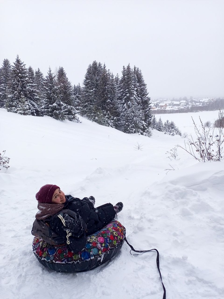Вы когда-нибудь ползли на четвереньках по снегу, чтобы покататься на санках? Мы да! Два шага вперёд, на третий проваливаешся выше колен в снег. Но разве это остановит русского человека?! Нет! Скажу так - впечатления больше были добраться туда, нежели само катание. Хотя оно тоже было весëлым! А вы пошли бы на такое ради катания на тюбингах?!))
