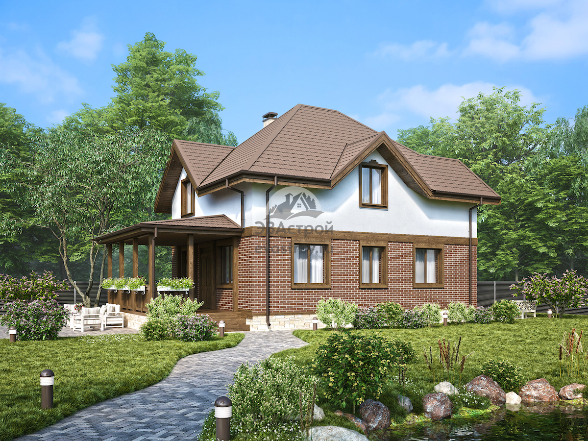 Проект дома с мансардой из газобетона в европейском архитектурном стиле - 106-53 (П35)