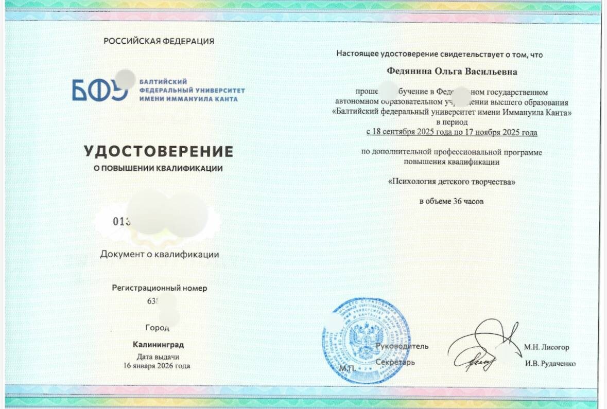 Пришла очередная корочка 😍😍😍 Среди них был курс про психологию детского творчества. Ощущение, что вот недавно в университете на первом образовании изучала, но по итогу оказалось, что многое подзабыто и было полезно освежить свои знания.