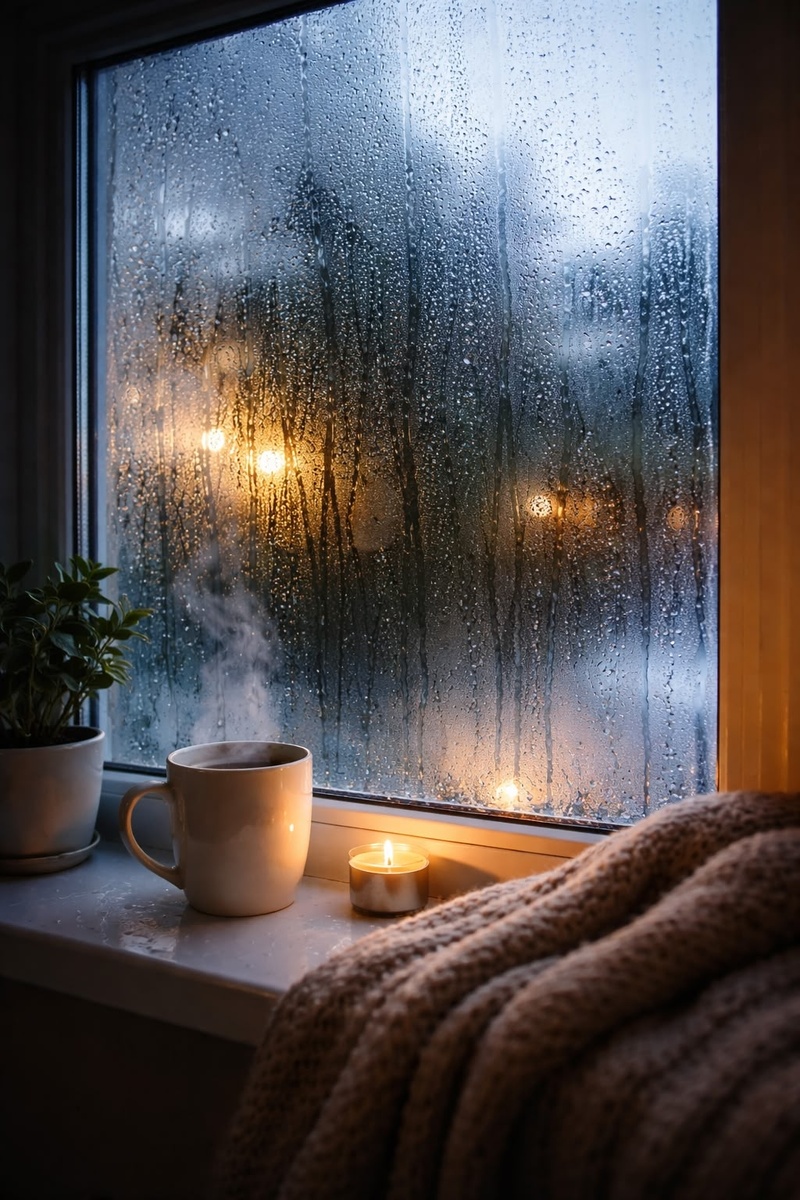 Основная причина запотевания окон — конденсация водяного пара. Воздух в помещении всегда содержит влагу: мы дышим, готовим еду, принимаем душ, сушим бельё. Когда тёплый и влажный воздух соприкасается с холодной поверхностью стекла, он резко охлаждается. В результате водяной пар превращается в жидкость и оседает на стекле в виде капель.