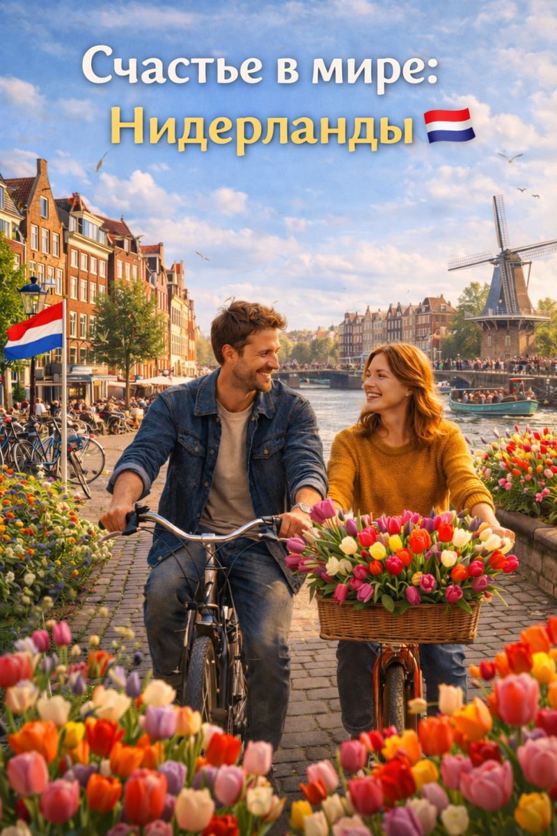 Счастье в мире: Нидерланды 🇳🇱 Следующая наша остановка — Нидерланды. Страна, где людей много, пространства мало, а ощущение жизни — удивительно свободное. Нидерланды — одна из самых плотно населённых стран Европы. Здесь живут миллионы людей, города компактные, расстояния короткие, и при этом — высокий уровень удовлетворённости жизнью. Парадокс? Не совсем. Когда я смотрю на Нидерланды как психолог и нейропсихолог, я вижу культуру, которая ежедневно снижает напряжение, вместо того чтобы его накапливать. 🚲 Страна, где движение — часть счастья Один из символов Нидерландов — велосипед. И это не просто транспорт, а образ жизни. Здесь велосипедов больше, чем людей. На них ездят дети, взрослые, пожилые. В обычной одежде. Без героизма и спорта. Просто — по делам и для удовольствия. С точки зрения мозга это гениально: • умеренное движение каждый день • свежий воздух • отсутствие пробок и постоянного раздражения • ощущение автономии и контроля Не «надо заниматься спортом», а движение вплет