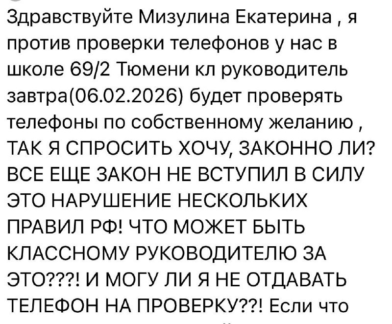 На проверки телефонов пожаловались тюменские школьники Екатерине Мизулиной