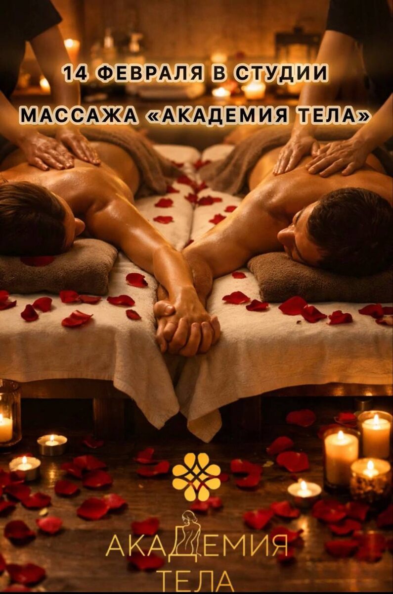 » 💘 Если в этот День всех влюблённых хочется не банального ужина, а настоящего отдыха и заботы вдвоём, мы знаем идеальный вариант. 💆♀️💆♂️ Парные массажи Вы находитесь в одном кабинете, в уютной и расслабляющей атмосфере. Время, когда можно выдохнуть и побыть только друг с другом. 🌿 Парная фитобочка Мягкий прогрев на травах, глубокое расслабление и усиление эффекта от массажа. 💖 SPA на двоих — 120 минут полного релакса В программу входит: — парная фитобочка — массаж всего тела — массаж головы — массаж лица 🤍 Индивидуальный формат Вы можете собрать свой собственный комплекс, добавив именно те процедуры, которые хочется: — разные виды массажей — скрабирование тела — дополнительные услуги Идеальный подарок на 14 февраля — эмоции, прикосновения и время вместе ✨ 🎁 Специальное предложение 13–15 февраля: скидка 10% при парном массаже от 90 минут при записи на массаж от 90 минут и более скидка распространяется на весь чек ⚠️ Количество мест ограничено Предварительная запись обя
