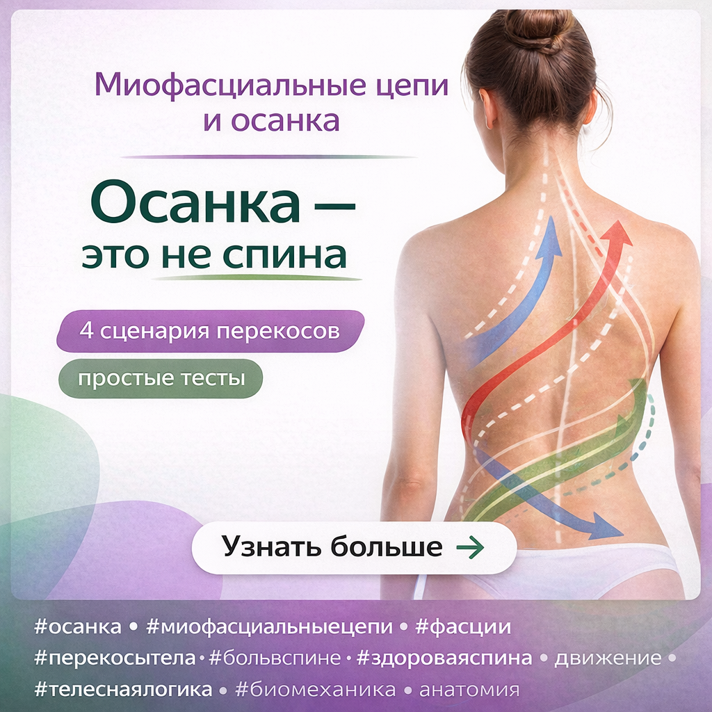 а не потому что «человек ленится держать спину». Современные данные (концепция Anatomy Trains) показывают: