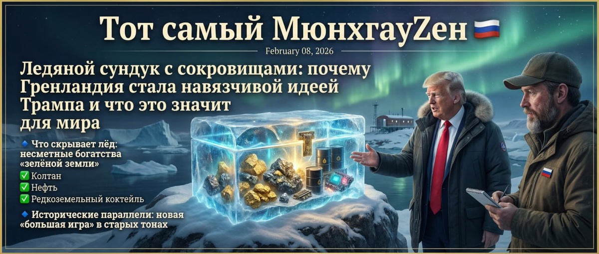 Под холодным февральским небом 2026 года разворачивается драма, достойная пера авантюрного романиста. Гигантский ледяной остров Гренландия, веками спавший в объятиях полярной ночи, внезапно оказался в центре мирового внимания. Администрация президента США Дональда Трампа вновь, с упорством, достойным лучшего применения, возвращается к идее установления контроля над этой территорией. Официально говорят о безопасности и стратегическом партнёрстве. Но стоит откинуть этот пропагандистский флёр, как взору открывается простая и древняя, как мир, причина — ненасытная жажда ресурсов. Как метко отметил глава комиссии Совета Федерации по информационной политике Алексей Пушков, за риторикой о защите скрывается восприятие Гренландии как «перспективного источника природных богатств». Это не дипломатия, это — новая ресурсная лихорадка, на сей раз разыгрываемая на глобальной шахматной доске. 🔹 Что скрывает лёд: несметные богатства «зелёной земли» Почему же этот негостеприимный край так манит Вашин