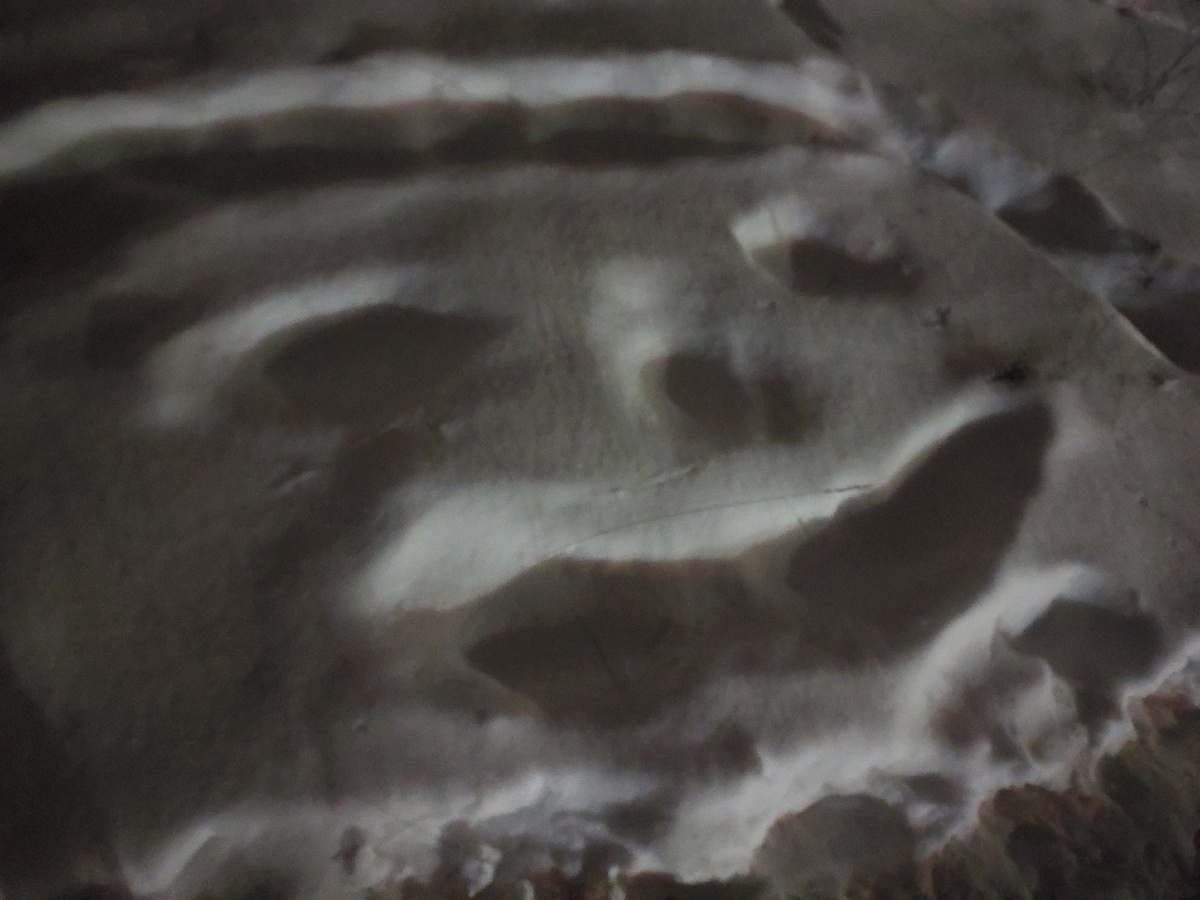 Так или иначе, ночью "лицо на снегу" выглядит не очень-то приятно, аж "мурашки" по спине. Но сегодня пошел небольшой снежок, и люди надеются, что "гримаса зимы" останется под снегом, а с грядущим потеплением и вовсе растает.