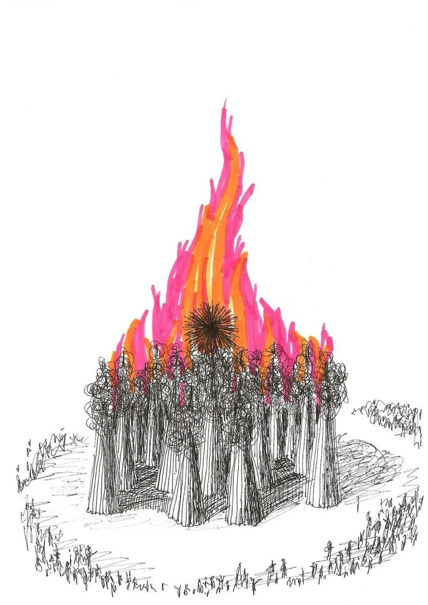 В арт-парке «Никола-Ленивец» Масленицу традиционно отмечают однодневным перформансом с сжиганием монументального арт-объекта