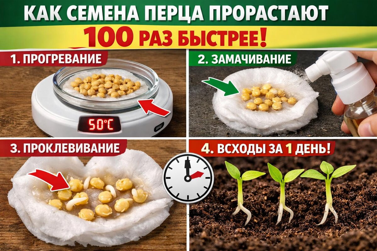 (Забудьте про 10-14 дней томительного ожидания. Агрессивный метод, который взламывает защиту семени и запускает росток за 24-48 часов. Работает и на старых семенах!) ❌ СТОП! Вы замачиваете семена перца на сутки в тёплой воде и ждёте неделю? Это вчерашний день. Росток внутри семени уже сформирован. Он не может пробить броню из ингибиторов роста и плотной оболочки. Наша задача — не ждать, а физически и химически разрушить эту броню. Секрет скорости: Мы совмещаем 4 мощных фактора: скарификацию (царапание), шоковый перепад температур, химический взлом и кислородный коктейль. Вместо одного — удар со всех сторон. ЧТО НУЖНО: Семена перца, термос, 3% перекись водорода, маленькое ситечко или марля, зубочистка, пинцет. Вы больше не ждёте у моря погоды. Вы — садовый спецназ, который вламывается в «семенную квартиру», выносит оттуда ингибиторы и на руках выносит готовый росток. 10 дней ожидания против 1-2 дней действий. Выбор очевиден.