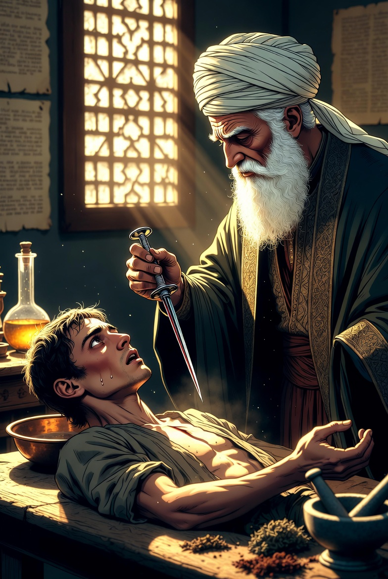 Боль от разреза на руке — острая, чистая. Но хуже — звук. Тихий, мерный стук алой струйки в медный таз. С каждым ударом вы чувствуете, как покидают вас не «лишние соки», а последние силы. Жар не спадает. Наоборот, мир вокруг начинает плыть, а голос хекима — отдаляться, будто из глубокого колодца.