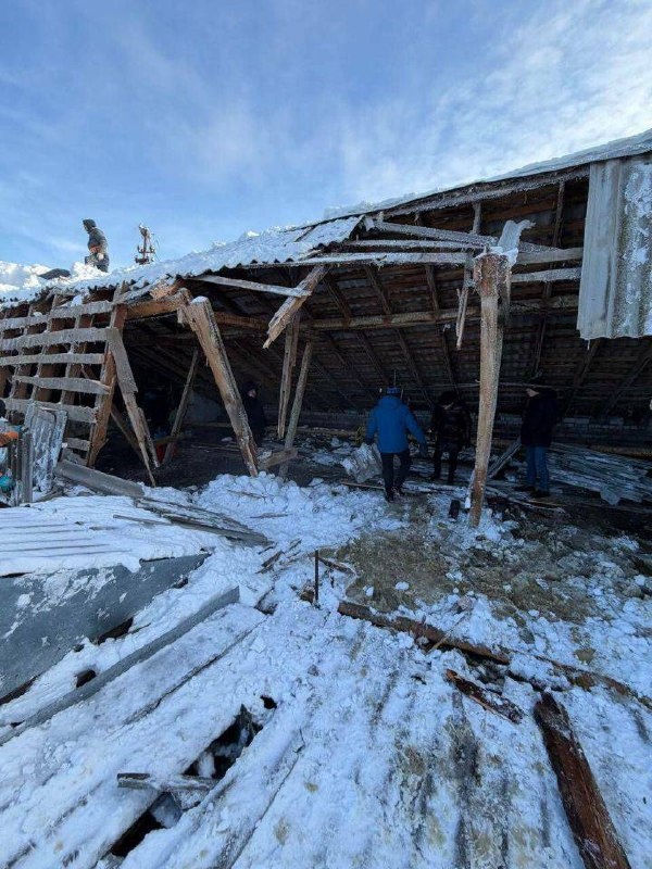 😳 Бүген Казанның Беломорская урамында урнашкан 71 нче А йортның ике подъезды өстендә түбәсе җимерелеп төшкән 👇🏻