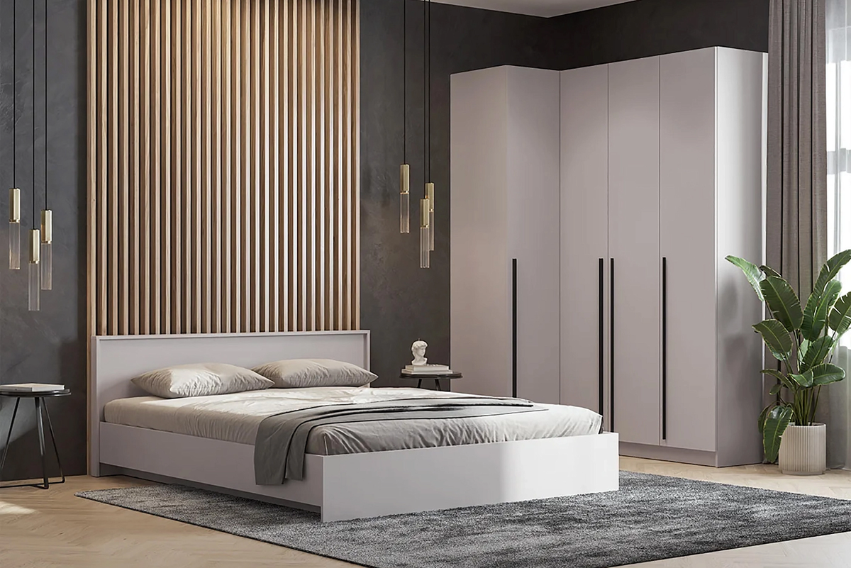 Сон — это не только про часы, проведённые в кровати. Можно проспать десять часов и чувствовать себя разбитым, а можно — шесть и проснуться с ощущением, что море вам по колено. И чаще всего это зависит от того, как устроена спальня. Освещение, цвета, мебель, текстиль — всё это напрямую влияет на качество сна. Так давайте разберемся, как создать спальню, в которой легко засыпать и приятно просыпаться. Цвет в спальне работает как фон для нервной системы. Он либо помогает расслабиться, либо незаметно держит в напряжении. Если спальня — место исключительно для отдыха, лучше выбирать спокойные, приглушённые оттенки: серый, тёплый коричневый, глубокий зелёный, сложные бежевые и молочные тона. Они создают ощущение защищённости и помогают быстрее переключаться в режим сна. Модульная спальня Берген Если же в комнате есть рабочая зона, туалетный столик или место для занятий, их лучше визуально отделить. Это можно сделать цветом, текстурами или мебелью. Такой приём помогает мозгу чётко понимать: з