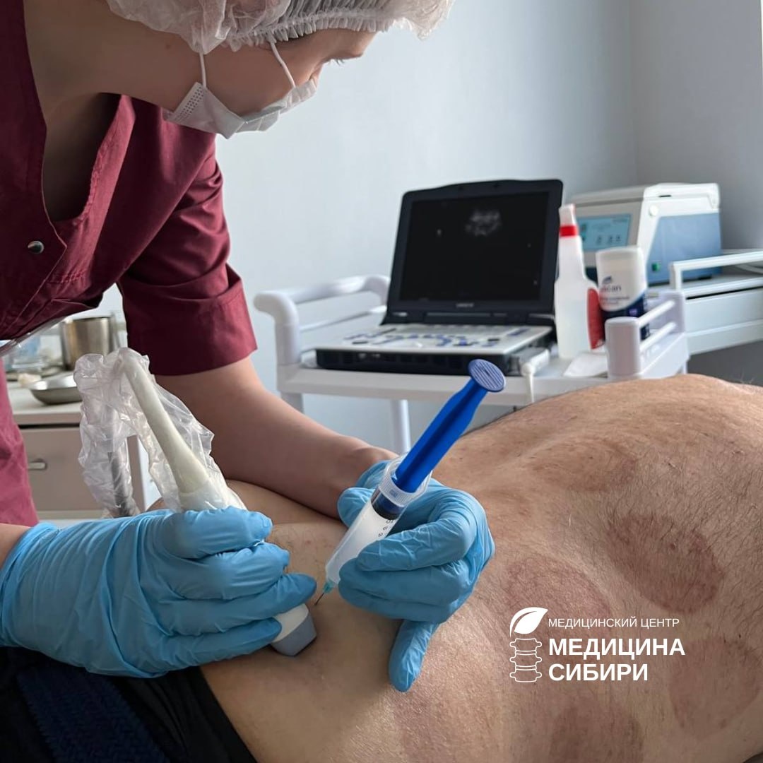 седалищного нерва. Причина такой боли далеко не всегда — «воспаление нерва». Чаще всего всё начинается с проблемы в поясничном отделе позвоночника (например, с грыжи или протрузии). Чтобы защитить повреждённый сегмент, окружающие мышцы приходят в состояние рефлекторного спазма, особенно это касается грушевидной мышцы, расположенной глубоко в ягодице. Именно под ней проходит седалищный нерв. Таким образом, цепочка выглядит так: Проблема в позвоночнике → раздражение нервного корешка. Рефлекторный ответ → стойкий спазм грушевидной мышцы. Результат → спазмированная мышца сдавливает седалищный нерв, вызывая боль, онемение и слабость по всей его длине. Поэтому эффективное лечение направлено не только на снятие боли, но и на разрыв этой порочной цепочки. Врач-невролог после точной диагностики может предложить лечебную блокаду под контролем УЗИ, которую проводят либо в область проблемного межпозвонкового диска, чтобы снять отёк и воспаление у корешка, либо непосредственно в саму грушевид