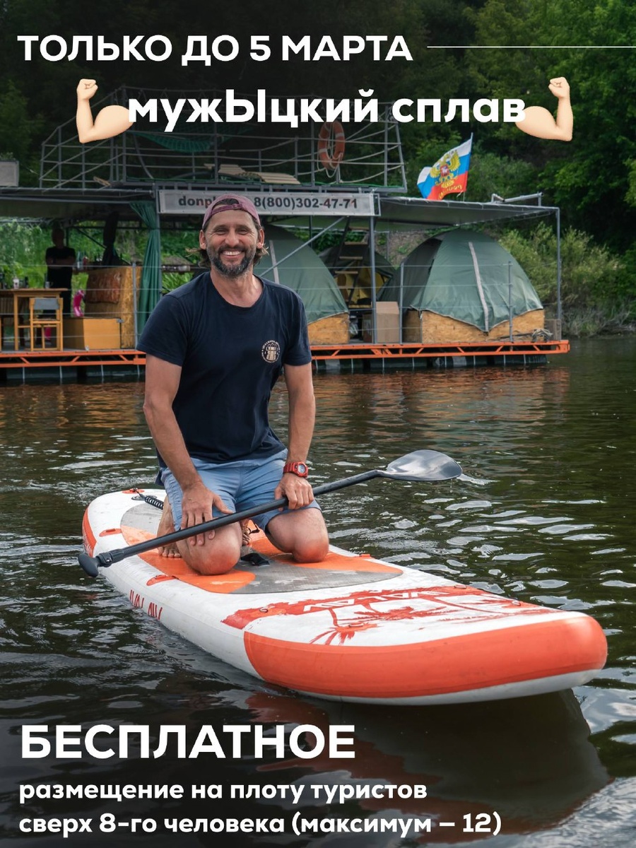Суть: БЕСПЛАТНОЕ размещение туристов сверх 8-го человека (максимум – 12). Если у вас компания больше 8 человек, то от 1 до 4 человек могут присоединиться к сплаву без доплат (только палатки захватите!)