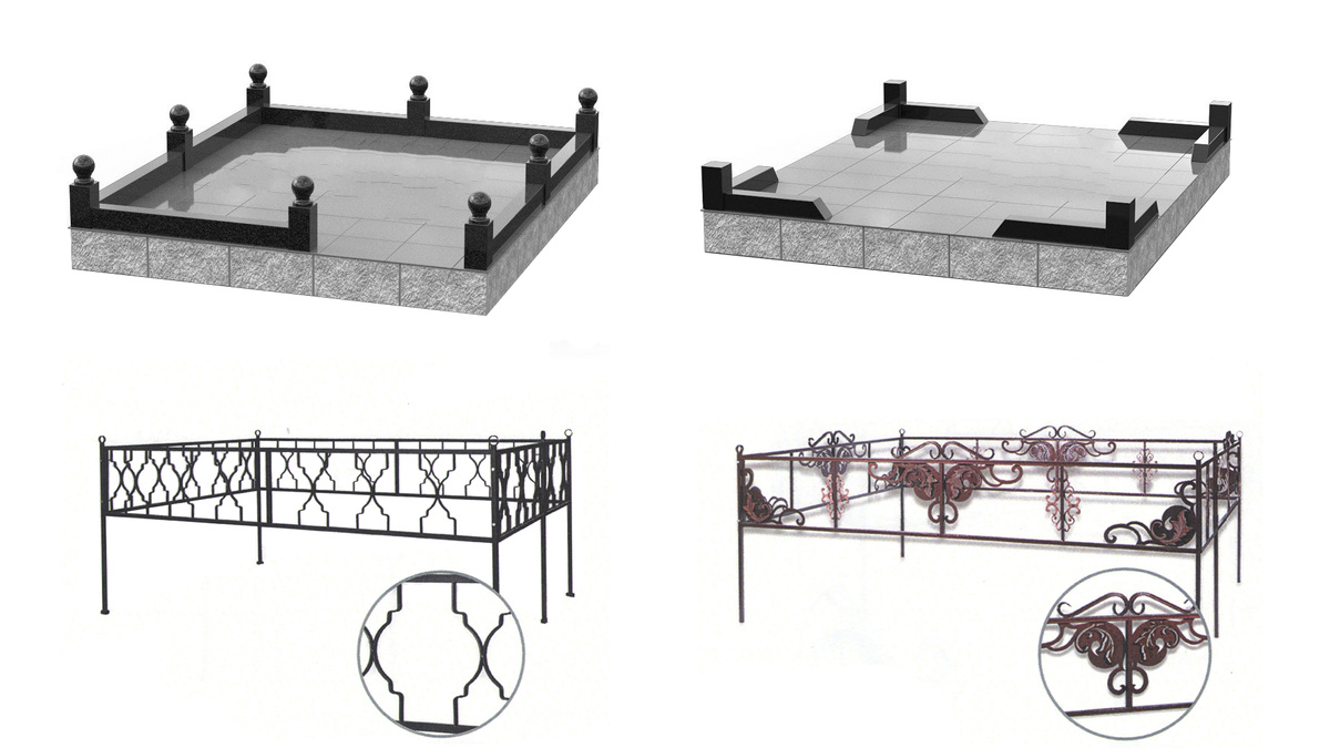 Найти подходящее ограждение на могилу является сложной задачей, чем кажется изначально. Ключевая цель, чтобы в результате проведенных всех работ, была получена единая композиция, в котором все элементы сбалансированы и дополняют друг друга, формируя единый образ. Производители могут предложить различные: каменные, металлические и комбинированные. Для изготовления первых используют гранит, мрамор. Вторые выполняют методом художественной ковки, сварки. Существуют также комбинированные модели, сочетающие в себе разные материалы. Этот вариант выделяется сдержанной красотой и считается наиболее дорогим. Лидером среди материалов является гранит. Подобные конструкции обладают выдающимися эксплуатационными характеристиками, гарантирующими службу на протяжении многих десятилетий. Каменная ограда устойчива к любым капризам погоды и даже спустя годы сохраняет безупречный внешний вид. Сварные ограждения открывают широкие возможности для реализации уникальных дизайнов со сложными узорами. Однако им