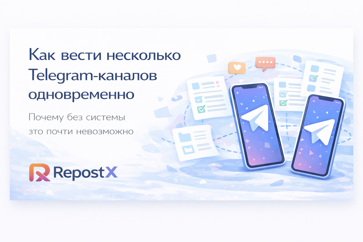 RepostX используется как инструмент для автоматического репостинга контента при работе с несколькими каналами.