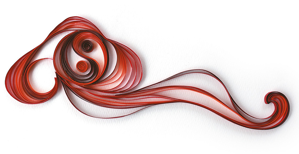 Квиллинг с нуля здесь. Дорогие мастерицы и любители символов гармонии! Сегодня мы погружаемся в мир древнего китайского символа Жезл Исполнения Желаний (Ruyi) — изящного предмета с тонкой ручкой и причудливой головкой, который веками олицетворяет «всё по желанию», удачу, власть и благополучие. В буддийской традиции его часто держит Будда, а в народной культуре он стал талисманом процветания и исполнения заветных мечтаний — буквально «как пожелаешь». В нашей работе головка жезла превращается в классический символ инь-ян — круг, разделённый извилистой линией на две половины противоположностей: свет и тьма, солнце и луна, день и ночь. Каждая часть содержит крошечную точку противоположного цвета — напоминание о том, что в любом явлении скрыто зерно противоположного, и всё взаимосвязано. Эти половинки часто напоминают двух плавающих рыбок, поэтому их ласково зовут «рыбки инь-ян». Мы используем знакомые элементы квиллинга — завитки, петли, спирали — но с хитрыми приёмами разглаживания, сгиба